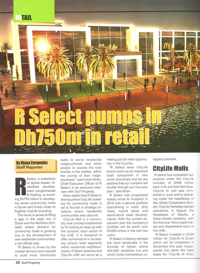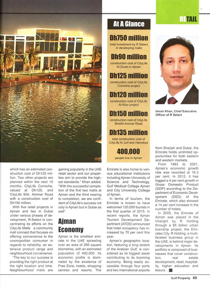 R Select pumps in Dh750m in retail - CEO, Mr. Imran Khan talks to Gulf Property, December 2015